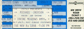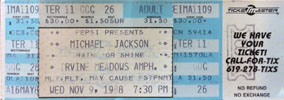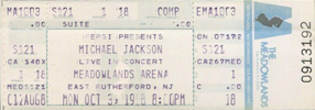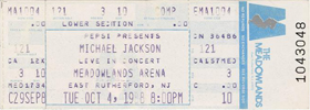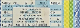- 9 de Octubre de 1987 Osaka (Japan) Osaka Stadium (este día Michael Jackson no dio ningún concierto y desconozco si se movieron fechas, ya que existen entradas con este día)