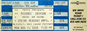 - 6 de Noviembre de 1988 Westbury (USA) Westbury Music Fair (entrada en la que aparece Michael Jackson junto a B.B. King dentro del Festival de Westbury, pero del que no he podido saber si participó, aunque este concierto no pertenecía al tour)